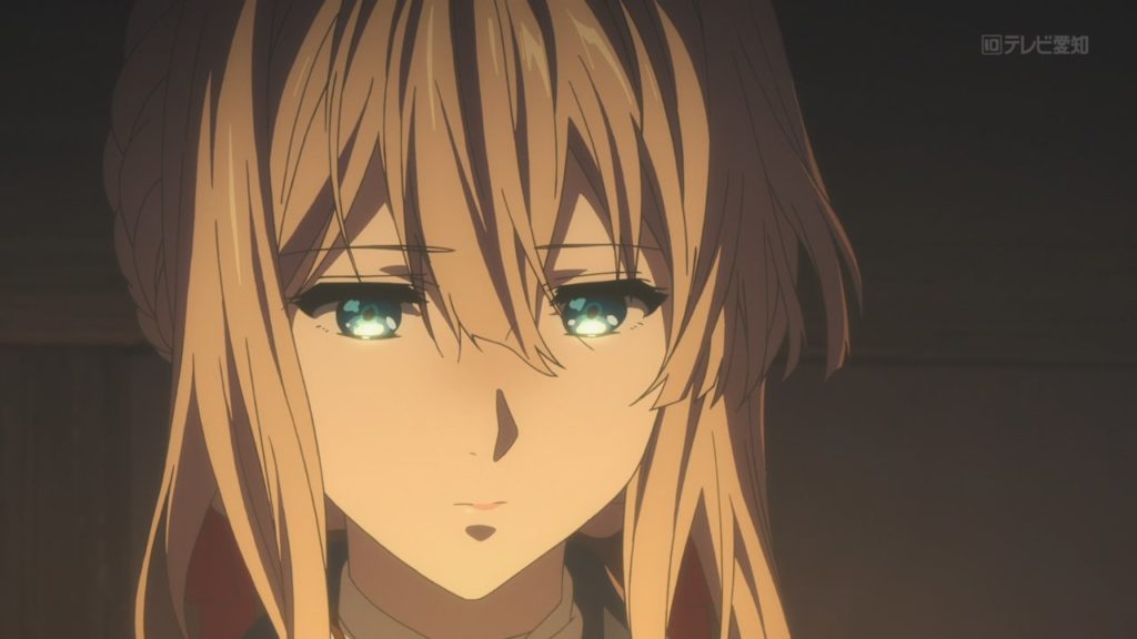 Por fim temos uma cena linda do Major escolhendo o nome da Violet. Notem como tentam manter ele como figura constante, aparecendo todo episódio em um flashback rápido. Se continuarem fazendo isso só para dizer para garota que ele está morto no final… vai ser muito triste.