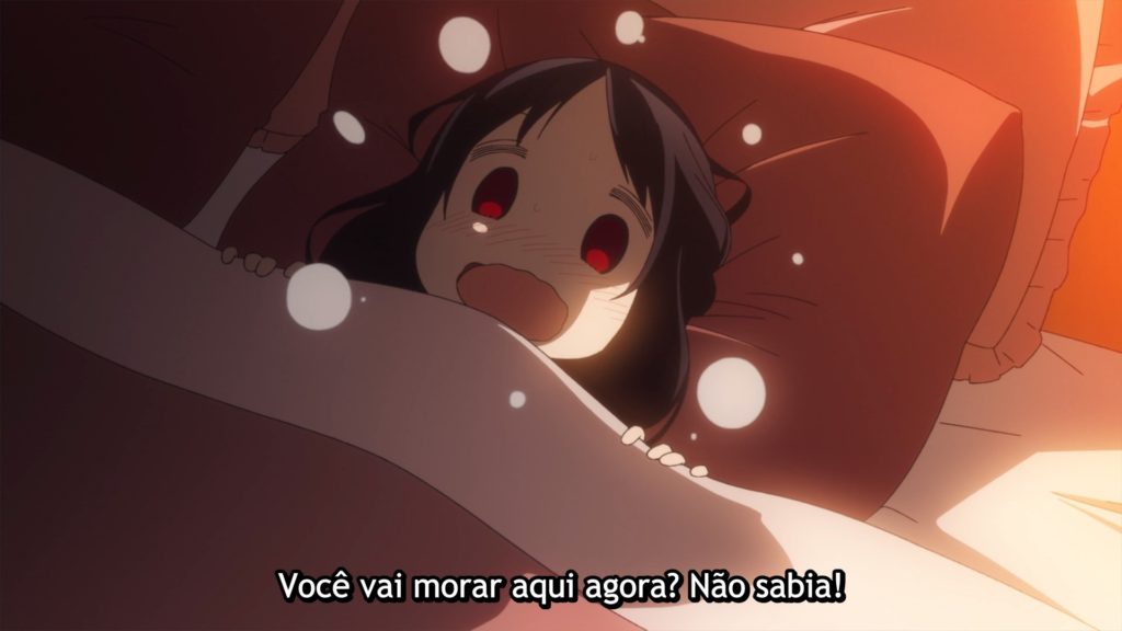 Antes disso, é interessante ressaltar o medo da Fujiwara de trovões. Uma participação tímida dela nesse primeiro momento, mas que não deixou de ser engraçada. Em linhas gerais, qualquer comédia romântica que se preze, tem que ter o episódio do “tufão”.