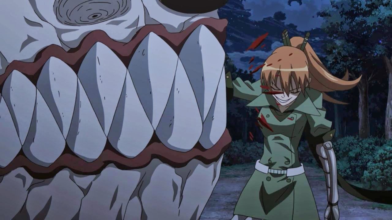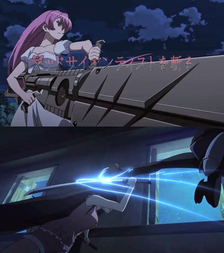 Cortaram a parte que a Akame explica a arma da Kurome.