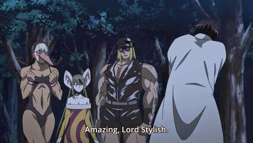 Não gosto do Stylish, ele é espalhafatoso pra caramba, não curto vilões assim. Os capangas dele seguem esse padrão e a maioria parece vinda de um circo dos horrores gay. Por outro lado, ele usar estratégia pra colocar os membros da Night Raid contra inimigos específicos, com habilidades individuais que gerassem um counter as armas imperiais de cada membro foi bem bolado. É a primeira vez que temos uma luta com um pouco de estratégia até agora.