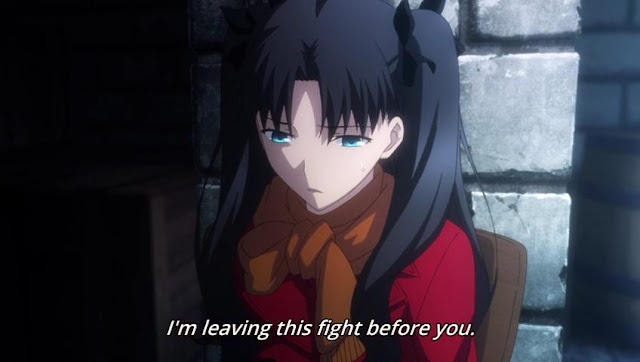 Com o que Fate gasta com monólogos e exposição, a Rin não soltar essas frases em 10 segundos é bem bizarro. O roteirista acha importante o Archer se re-re-re-explicar, mas informações realmente uteis deixa passar (a morte não morrida do Lancer é outro exemplo de coisa mal ou não explicada).