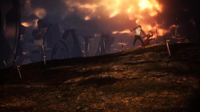 Lamento não terem fundido mais da rota Fate a essa, já que poderíamos ter lutas mais relevantes contra a Rider e o Berserk, e o resto deixava parecido com o desenvolvimento de UBW mesmo (gostaria da Saber lutando ao lado do Shirou no final no entanto, deixaria o final mais coeso, mas vou entrar nesse assunto quando a hora chegar).