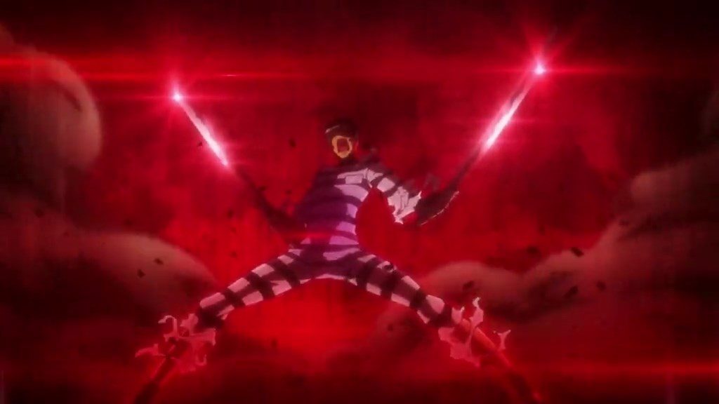 Em Nanbaka o protagonista tem uma transformação inesperada no ep 6. Infelizmente não achei uma transformação que acrescenta braços laminados muito legal. Mas o propósito da cena é claramente impactar. Funcionou para alguns, já que tive vários pedidos para incluir a cena durante a semana.