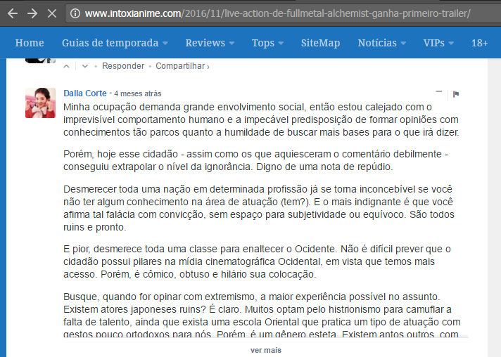 Desteto esse tipo de pessoa que posta textão. O cara não ta nem aí pra fazer um debate saudável. Ele bota um texto longo e com linguagem mais elevada pra conseguir ganhar mais likes e mostrar que seu ponto de vista é o correto. E mano, concordo totalmente com vc. Os japoneses não conseguem fazer live action bom. Samurai X foi uma pequena exceção, mas na minha opinião a atuação daquele filme ainda estava ruim. Nos americanos, a atuação é boa, mas nunca fazem fiel. Isso mudou com Edge of Tomorrow (e torço pra que seja o mesmo com ghost in the shell)