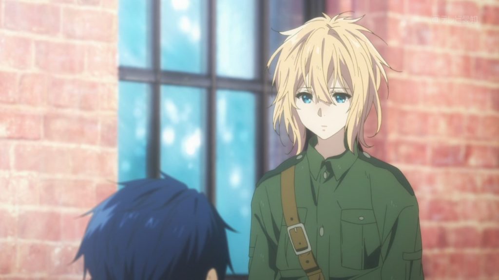 Por fim temos uma cena linda do Major escolhendo o nome da Violet. Notem como tentam manter ele como figura constante, aparecendo todo episódio em um flashback rápido. Se continuarem fazendo isso só para dizer para garota que ele está morto no final… vai ser muito triste.