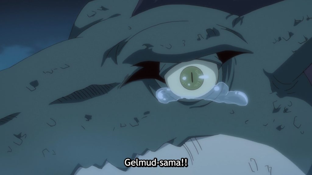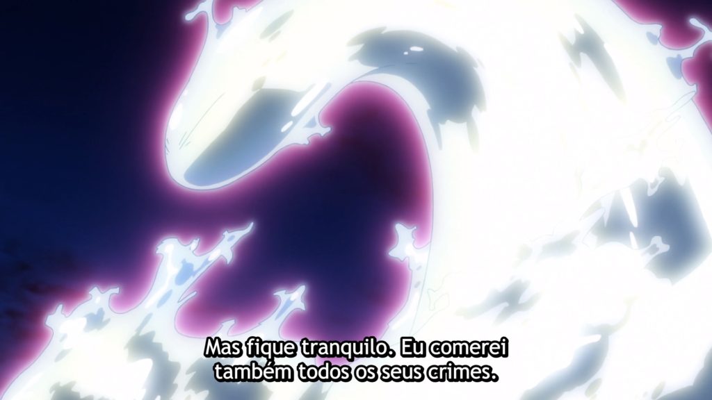 Interessante é ver aquele “poder”, se assim podemos chamar, do Rimuru acessando a memórias dos seres que estão sendo absorvidos. Esse é um exemplo de exposição boa. Nesse momento, tinha sentido a gente entender os motivos do “porcão”. Ressalta-se que essa artimanha do slime me lembra um pouco de um poder que o Subaru Natsuki de Re:Zero adquire na light novel. Como isso não apareceu no anime, não vou entrar em detalhes por ser spoiler.