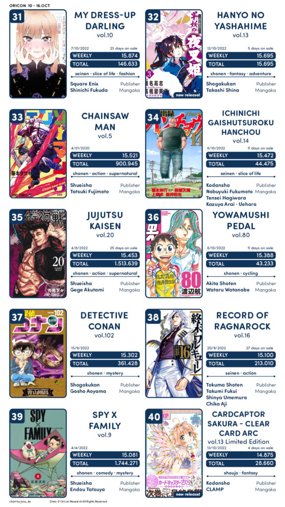 E o boost de Chainsaw Man começa – Mangás mais Vendidos (Outubro 10 – 16)