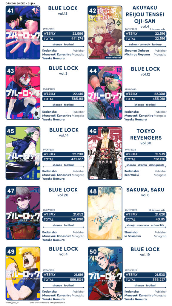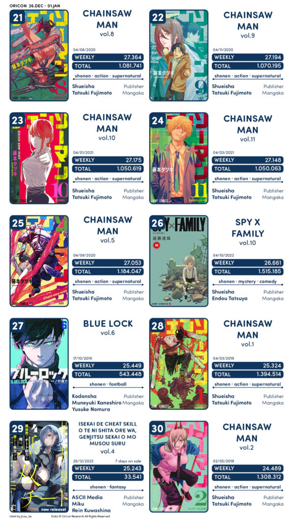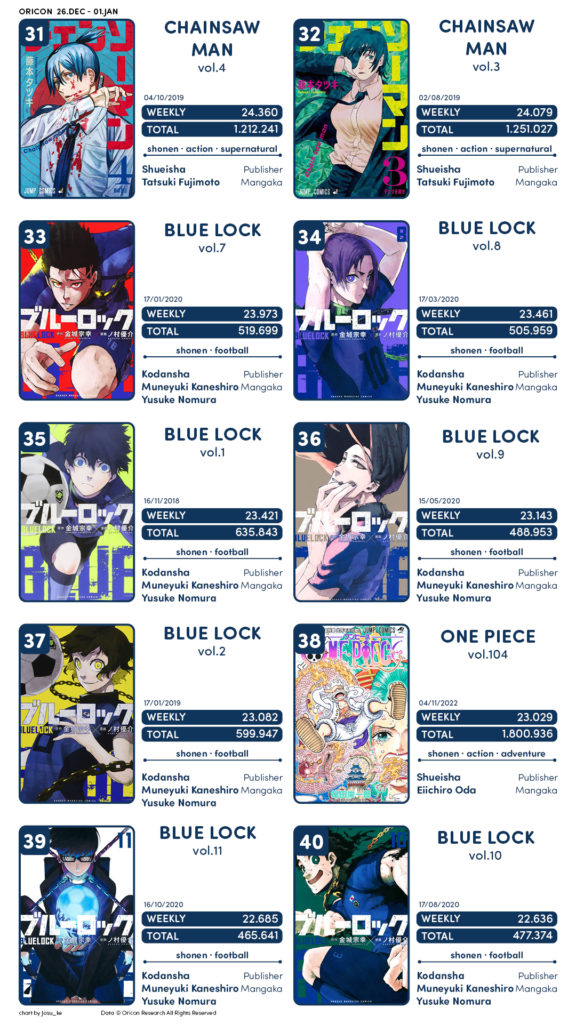 No demais, boa parte das obras são os volumes de Chainsaw Man e Blue Lock.