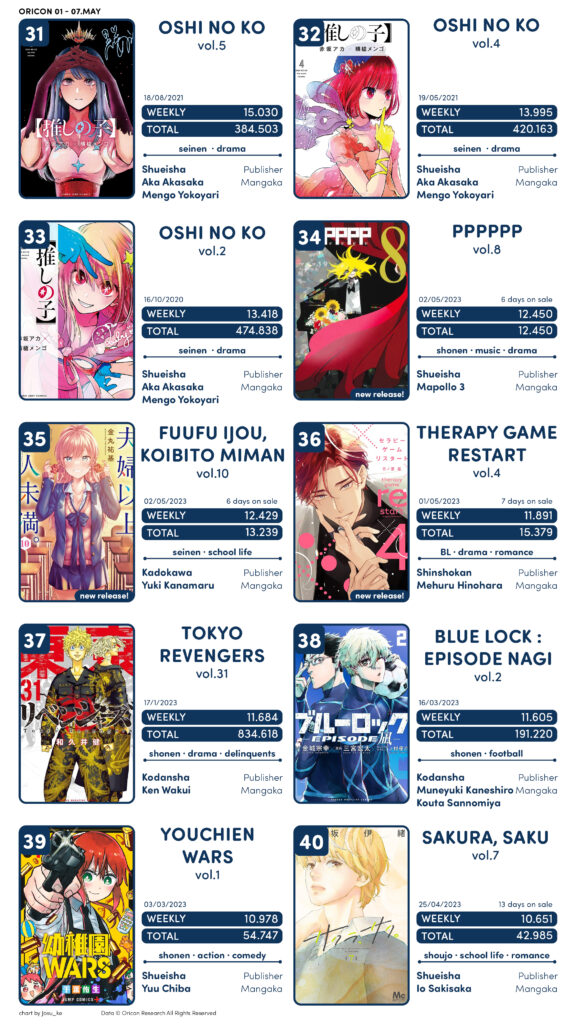 Semana com estreias da JUMP, como Ao no Hako, Dandadan, Undead Unluck aparecendo, além de outras obras como Gakuen Babysistters, Shuumatsu no Harem e Kuma Kuma Kuma Bear.