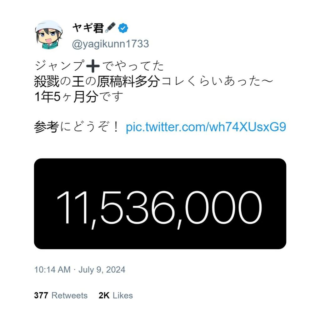 O autor do mangá de Satsuriku no Ou postou em seu twitter os valores que recebeu da editora Shueisha durante a publicação de sua obra na Shounen JUMP Plus.