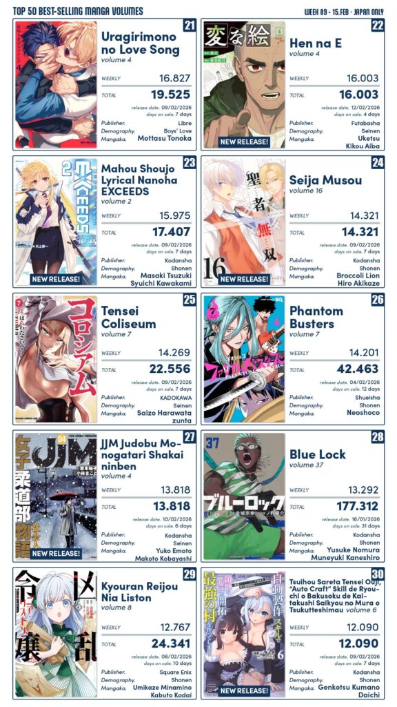Mangás mais Vendidos (Fevereiro 09 – Fevereiro 15)
