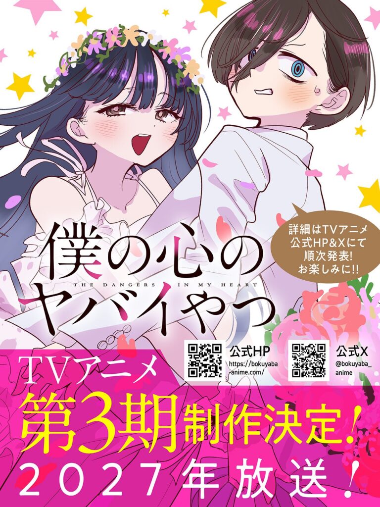 O canal japonês TV Asahi anunciou que o anime de Boku no Kokoro no Yabai Yatsu (The Dangers in My Heart) irá ter uma 3º temporada.