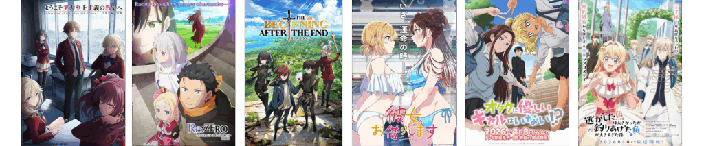 | 07/04 | Hyakki Yakoushou Last Boss 2 MARRIAGETOXIN Class de 2-banme ni Kawaii Replica datte Hidarikiki no Eren Tadaima, Ojamasaremasu! Megami “Isekai Tensei Nani ni Naritai Desu ka” |