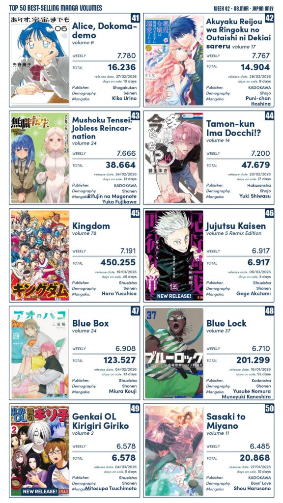 Mangás mais Vendidos (Março 02 – Março 08)